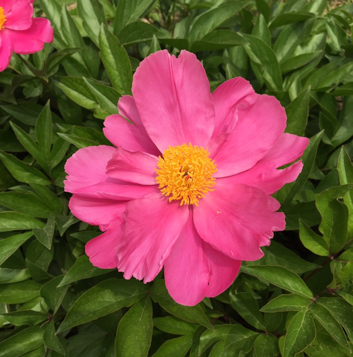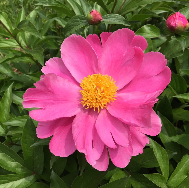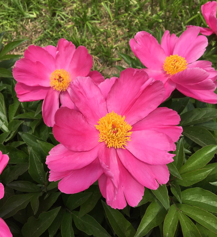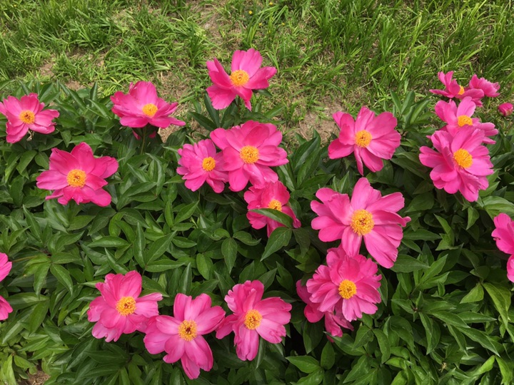 刚才出门买菜,发现小区还种了一排芍药,开得正旺,这正是:
