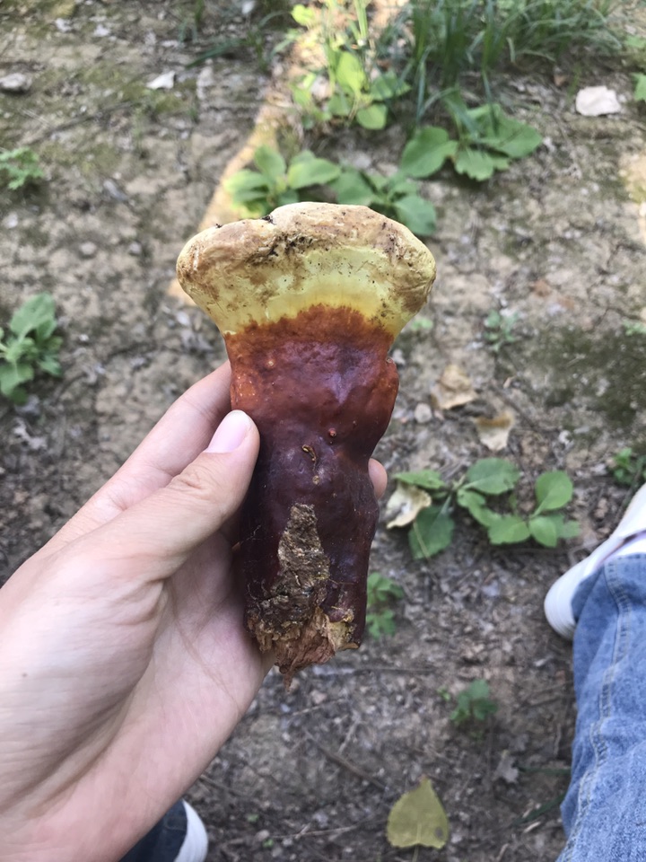灰蘑菇它成熟以后里面就是灰,这灰就是药材,大热天长痱子用这灰擦一下立马就好。