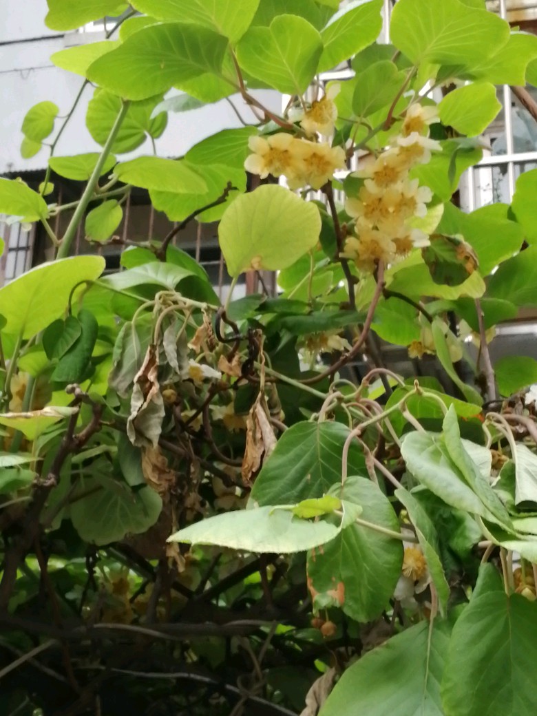 没见过猕猴桃的花朵,在街边的小区里发现了一棵猕猴桃树,开满了嫩黄色的小花,第一次见,挺漂亮的。
