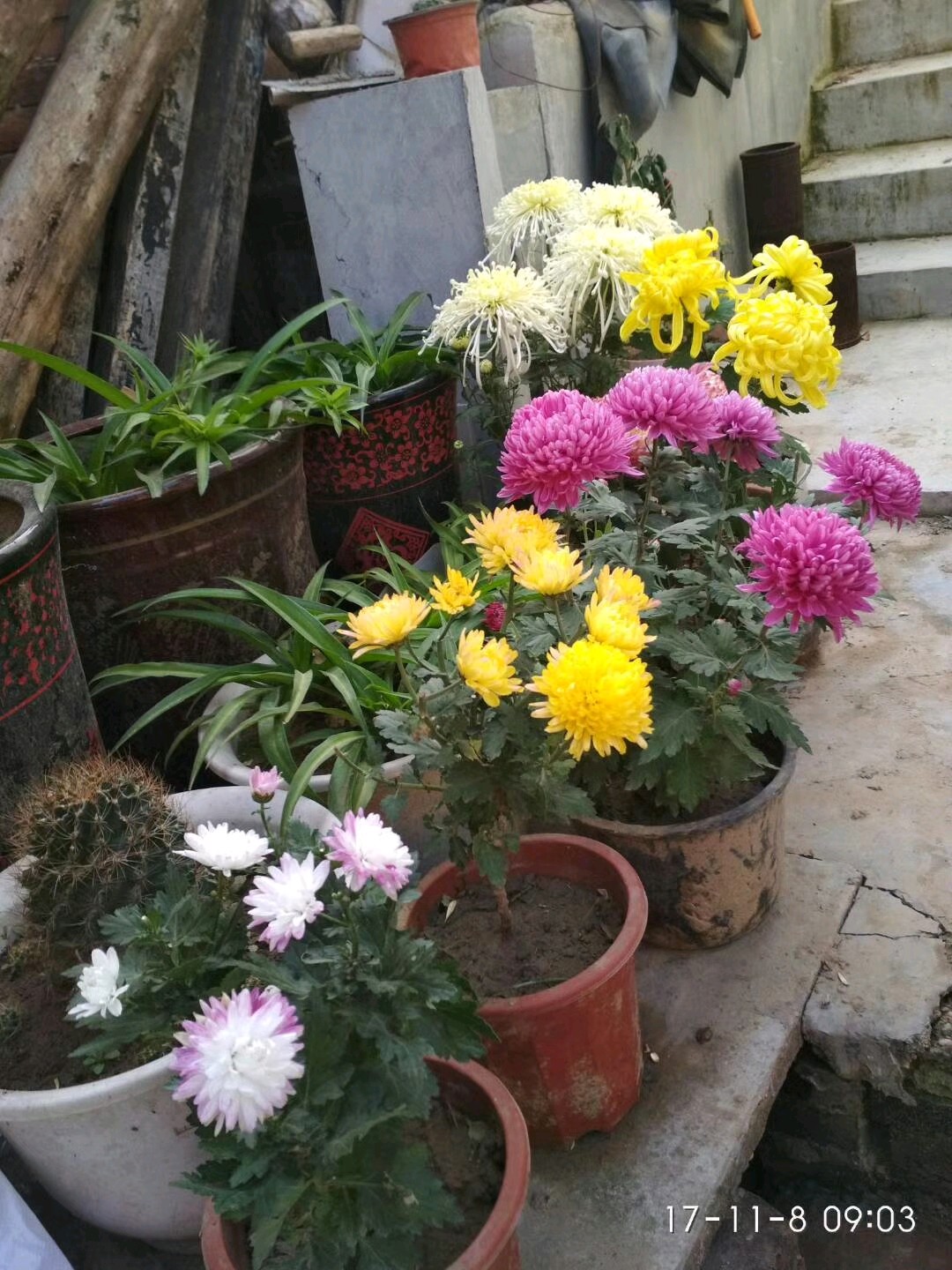 买了几盆菊花,现在已经一院子了。