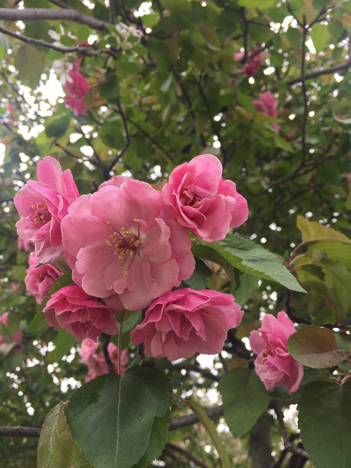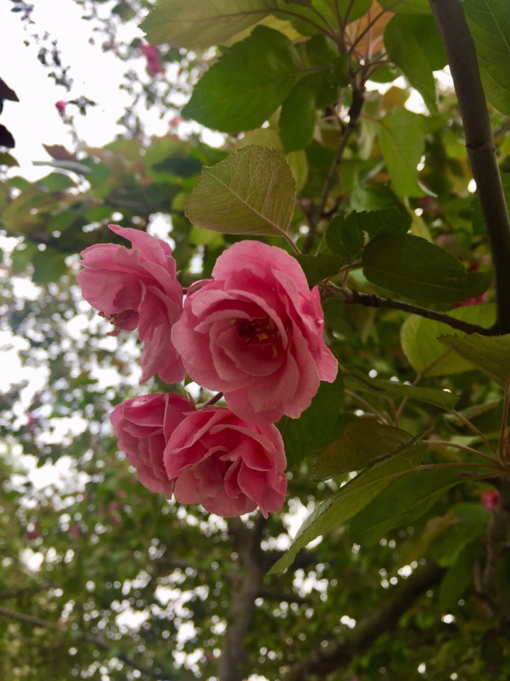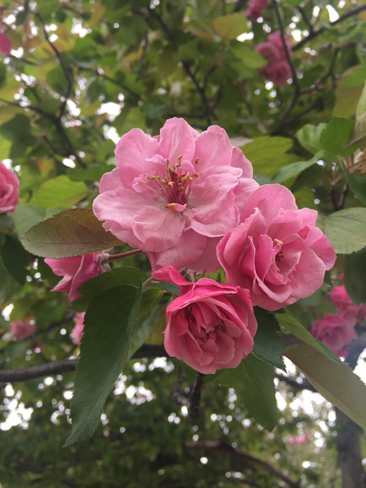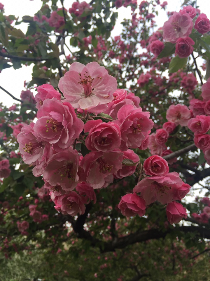 见过许多单瓣花海棠 这种颜色、复瓣的是第一次看到!初看还以为是樱花呢 😜