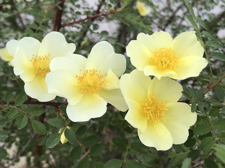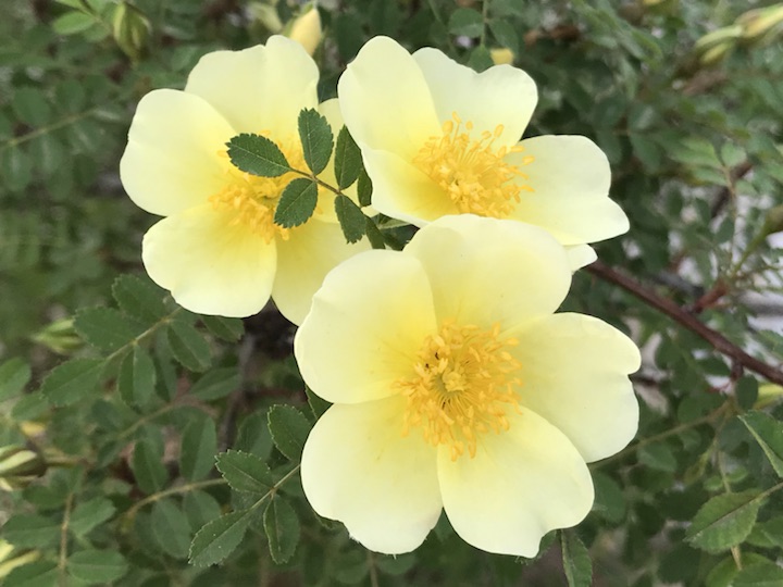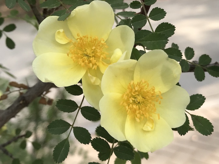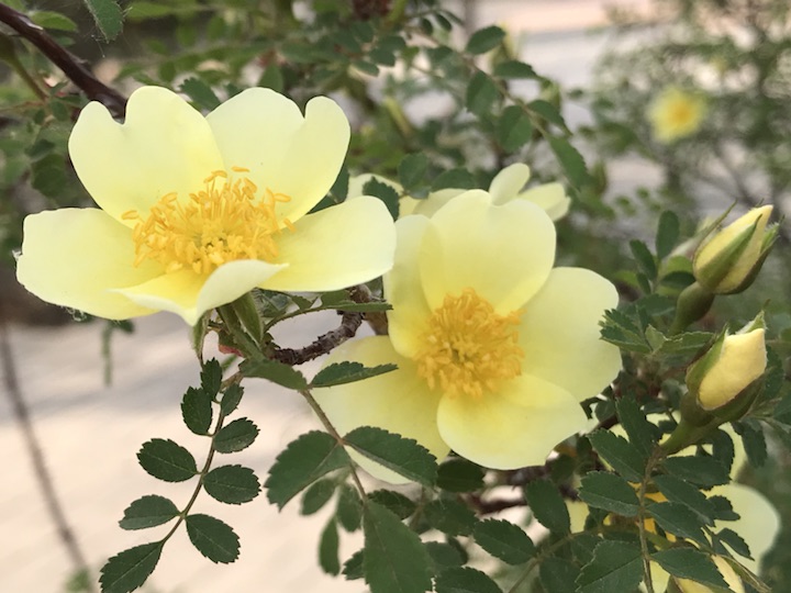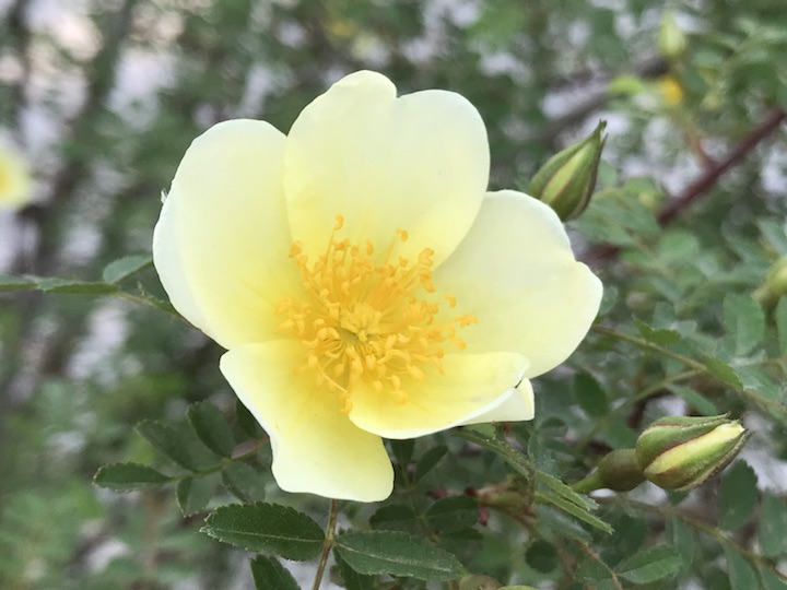 你要稍微注意你会很容易发现这单瓣黄刺梅有两个颜色,同样的黄色这个颜色要略浅一点,花朵也稍稍小了一圈。可无论颜色深浅的不同,它还是一如既往的美丽不是吗?