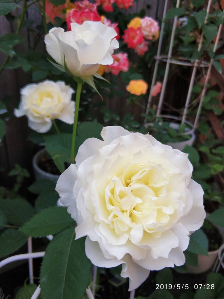 :好漂亮啊!觉得两种花颜色一样,花瓣形态上有点区别,雪野一梦花瓣波浪状更明显一些。你觉得呢?
