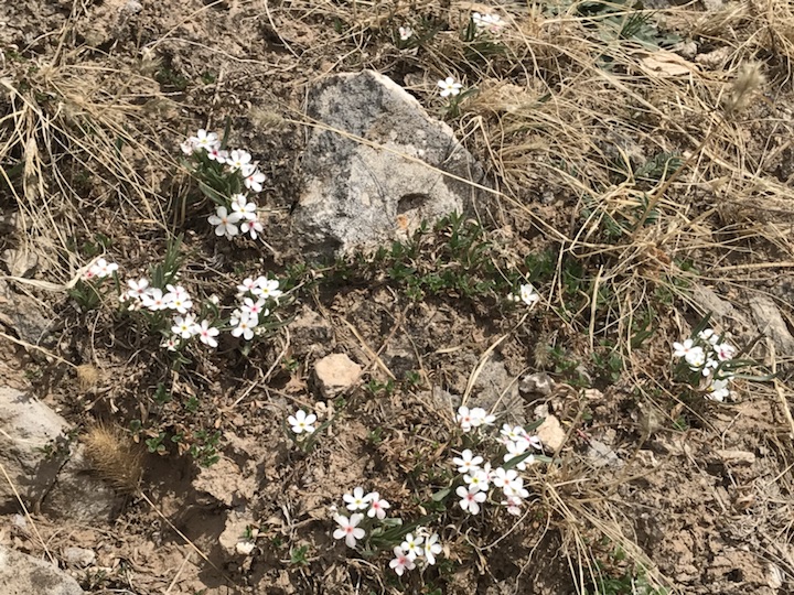 五月三号跟朋友出去烧烤,在一处很开阔的小河边,在大山的怀抱里,风是一如既往的刮着,阳光却很暖。我是闲不住的一个,趁着小伙伴们都在准备着烧烤食材的空档,我跟着几个小朋友爬上了身后的石头山。一开始只想爬上山顶看看山那边有什么,然后再拍个小视频,压根没想到会在山上遇到花。首先闯进我视线里的其实是狼毒花,刚开始只看到一株,于是我便360度无死角的给它拍,后来才发现,原来还有好多呢,都是一丛丛一簇簇的散布在石头山里,野趣横生。再登高了一点,我又看到了点地梅,同样是星星点点的散落在贫瘠的土地之上。花开的清新淡雅,让人不禁感慨生命的顽强所在!