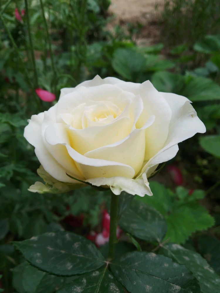 谁知它那么好呢?当初买它的时候,还给店家一个大大的差评,因他给我发错了颜色。然后呢?觉得有点失望,就把它随便种在角落里。春天刚暖和,它就叶子绿油油的泛着亮光,长的很茂盛,等它长出花骨朵,半开不开的时候,我就喜欢它了,走近它就觉得一阵阵的香气,非常好闻,样子也很可爱,花朵呈杯形,花形很好,又有点像奶油雪糕的颜色,不知它名字,我就给它起个名字,就叫奶油雪糕吧!挺好的。😂