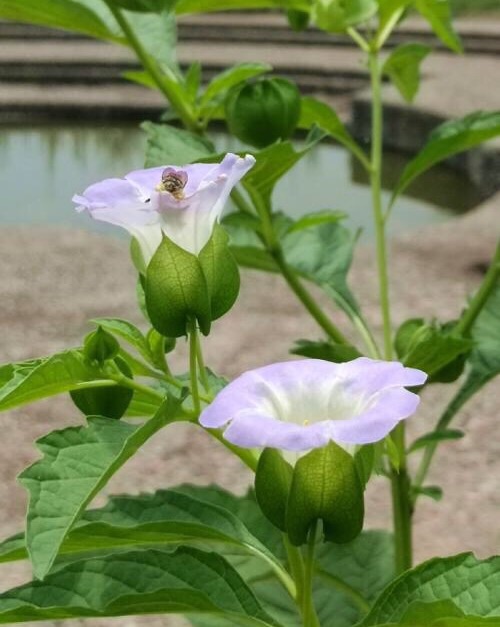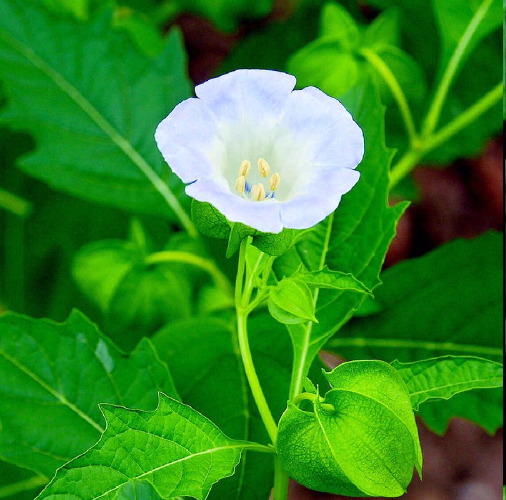 假酸浆(学名:Nicandra physalodes (Linn.) Gaertn.)是茄科、假酸浆属一年生直立草本植物,多分枝。茎直立,有棱条,无毛,高可达1.5米,叶片卵形或椭圆形,草质,顶端急尖或短渐尖,基部楔形,两面有稀疏毛;花单生于枝腋而与叶对生,花萼5深裂,裂片顶端尖锐,基部心脏状箭形,花冠钟状,浅蓝色,浆果球状,黄色。种子淡褐色,夏秋季开花结果。