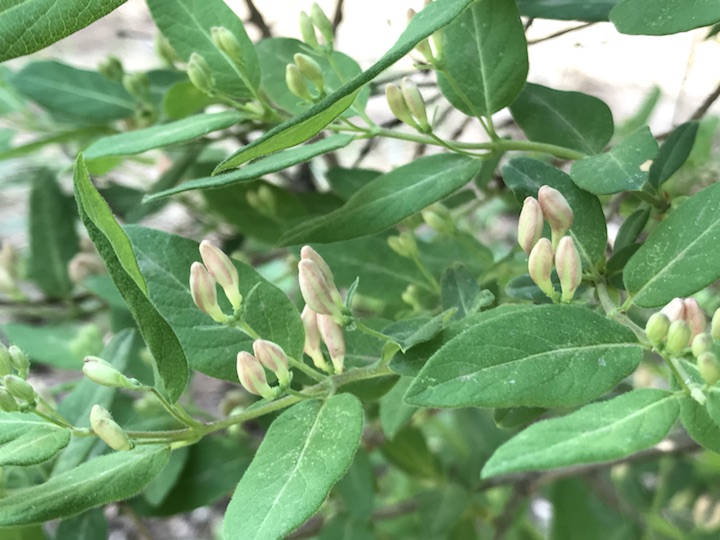 知道是金银花而已,具体什么品种就不知道了。灌木状的金银花,没有了藤蔓与缠绕开白色或红色的小花。