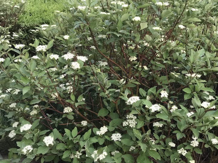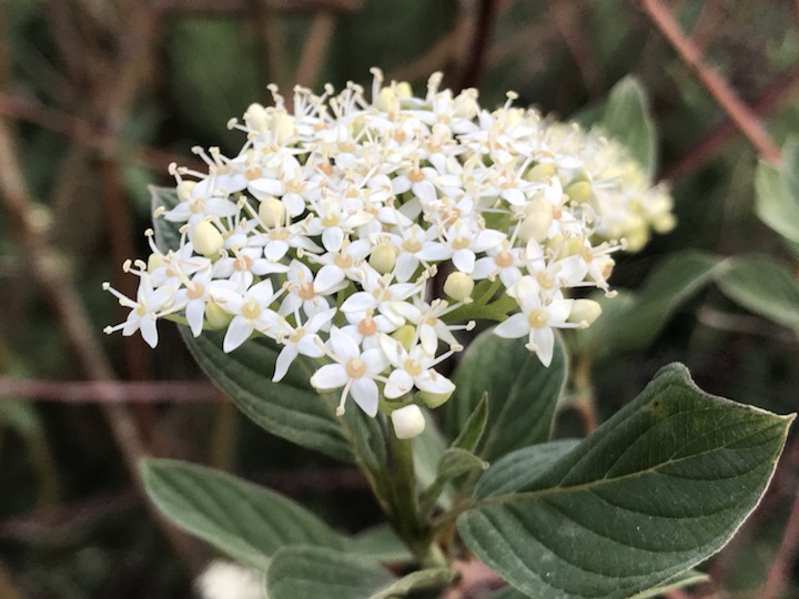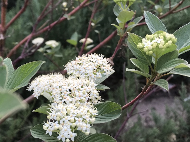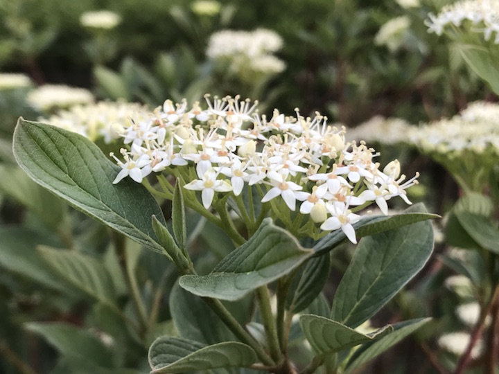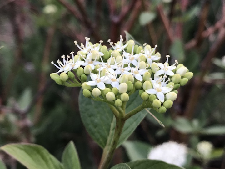 红瑞木在北方很常见,红色的枝条也是独具标志性。春天的小白花,夏天的小白果,秋天的红叶,冬天的红枝条,好像每一个季节都有它别具一格的美