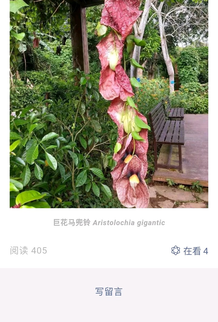 不一样的马兜铃,图片是版纳植物园里的花花,是公众号里截图