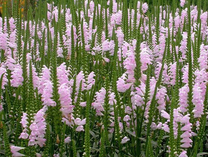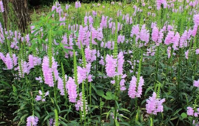 假龙头花(学名:Physostegia virginiana Benth.)是唇形科,假龙头花属多年生宿根草本植物。株高可达1米。茎丛生而直立,四棱形,叶片披针形,亮绿色,边缘具锯齿。穗状花序顶生,有花,花色粉色、白色、淡紫红,因其花朵排列在花序上酷似芝麻的花,惟密度稠一些,故名芝麻花。