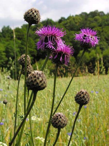 蓟(学名:Cirsium japonicum Fisch. ex DC.)是菊科,蓟属多年生草本植物,块根纺锤状或萝卜状,茎直立,高可达150)厘米,基生叶较大,全形卵形、长倒卵形、椭圆形或长椭圆形,羽状深裂或几全裂,全部侧裂片排列稀疏或紧密,宽狭变化极大,叶片呈现较为明显的二回状分裂状态,顶裂片披针形或长三角形。头状花序直立,少有头状花序单生茎端的。总苞钟状,总苞片覆瓦状排列,向内层渐长,瘦果压扁,偏斜楔状倒披针状,小花红色或紫色,冠毛浅褐色,多层,冠毛刚毛长羽毛状,4-11月开花结果。
