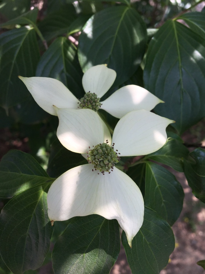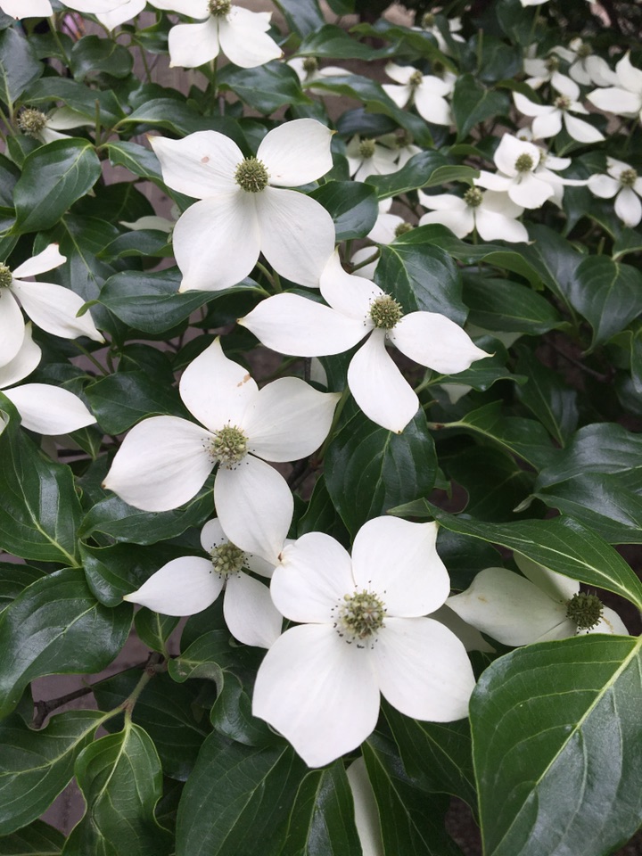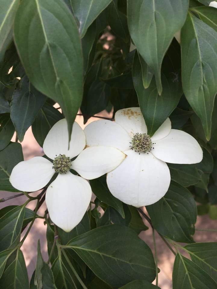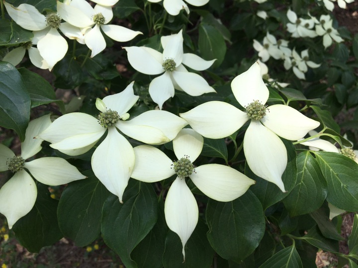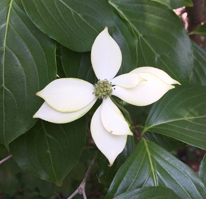 第三次造访四照花,惊喜更加巨大,我们常看的那棵树上的四照花不仅长得更大,花瓣显得更圆润,而且花的颜色也从浅绿变成了令人惊叹的洁白,那感觉,不亚于目睹着丑小鸭蜕变成了美丽的白天鹅。