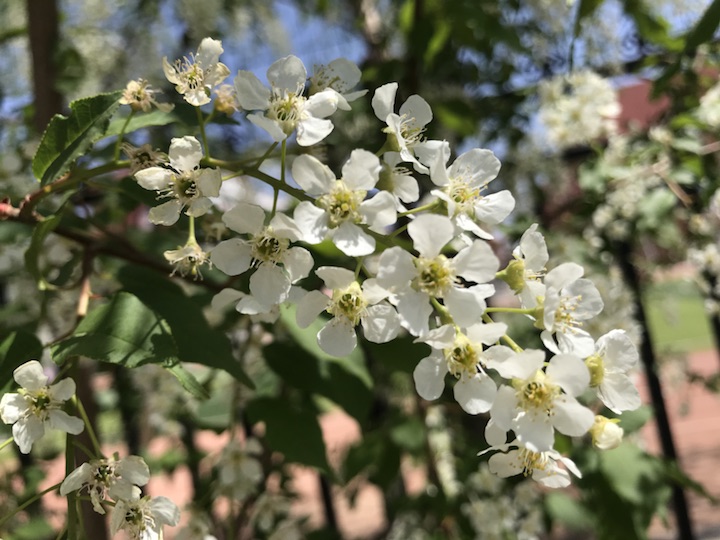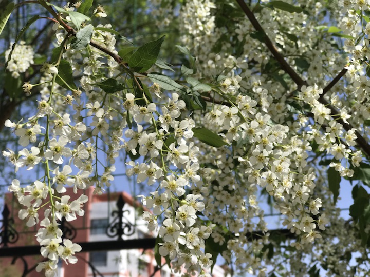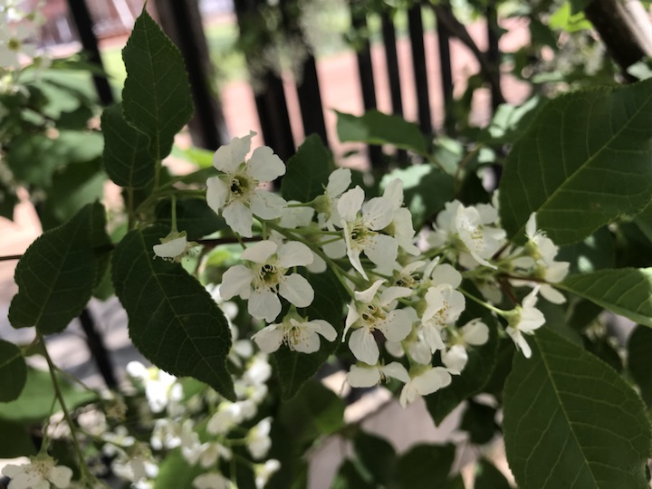 稠李(学名:Padus racemosa (Linn.) Gilib.)是蔷薇科稠李属植物,落叶乔木,别称臭耳子(甘肃)、臭李子(东北)。我不知道它别称中的臭指什么,因为我闻了闻花,其实是有一股淡淡的香味,并不臭,相反还挺好闻