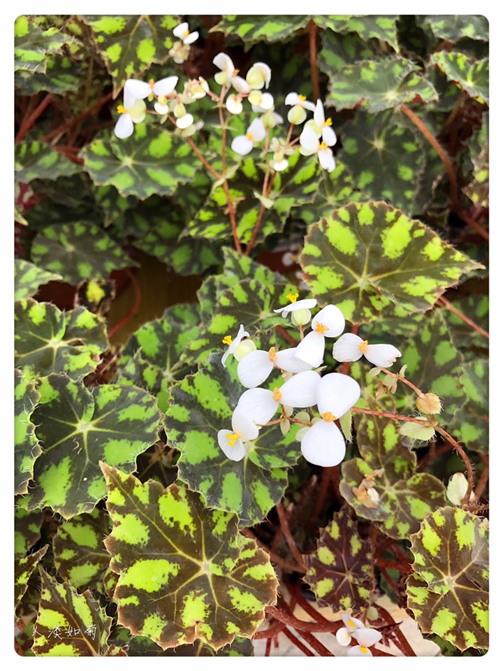 花卉超市里第一次见到这么多品种的蟆叶海棠,花一看便知是秋海棠,花色不同的叶子叫我很是意外,此前还真没有接触过这种秋海棠。