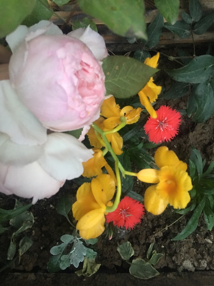 剪下鼓槌石斛的花和伍德、天竺葵插瓶,点缀平淡生活