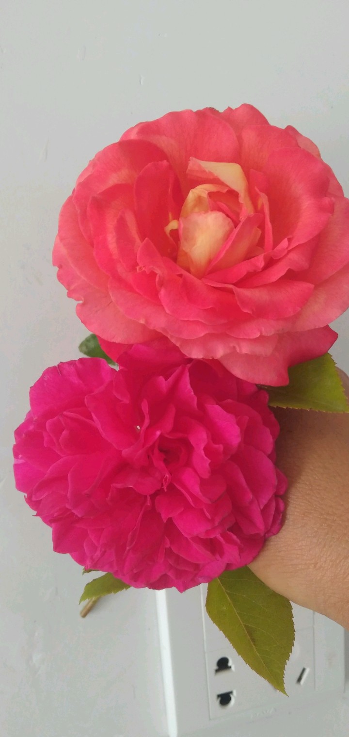 刚从街上过,看到卖月季花的,又买了两颗。看花盆里干干的,漂亮的花儿好可怜。就说,宝贝儿跟我回家吧,幸福生活开始了!回家就赶紧给它浇水,剪枝整形,一定给它养得肥肥壮壮。下图是我剪下的花枝,朋友们看看好不好看?15元钱买两颗,觉得蛮漂亮的。哈哈!😂