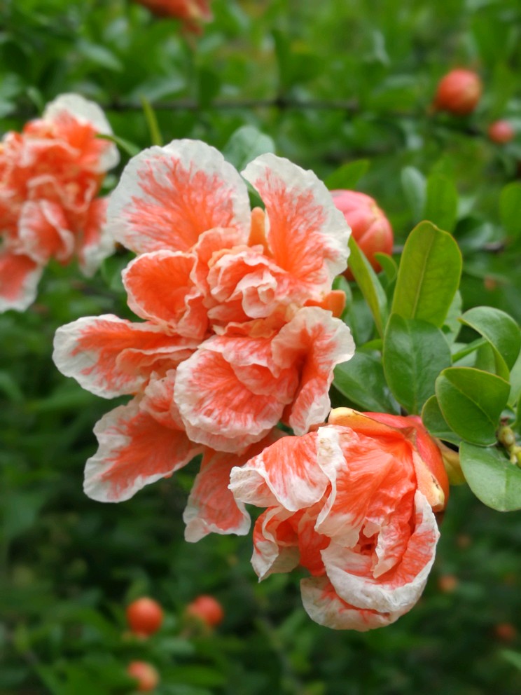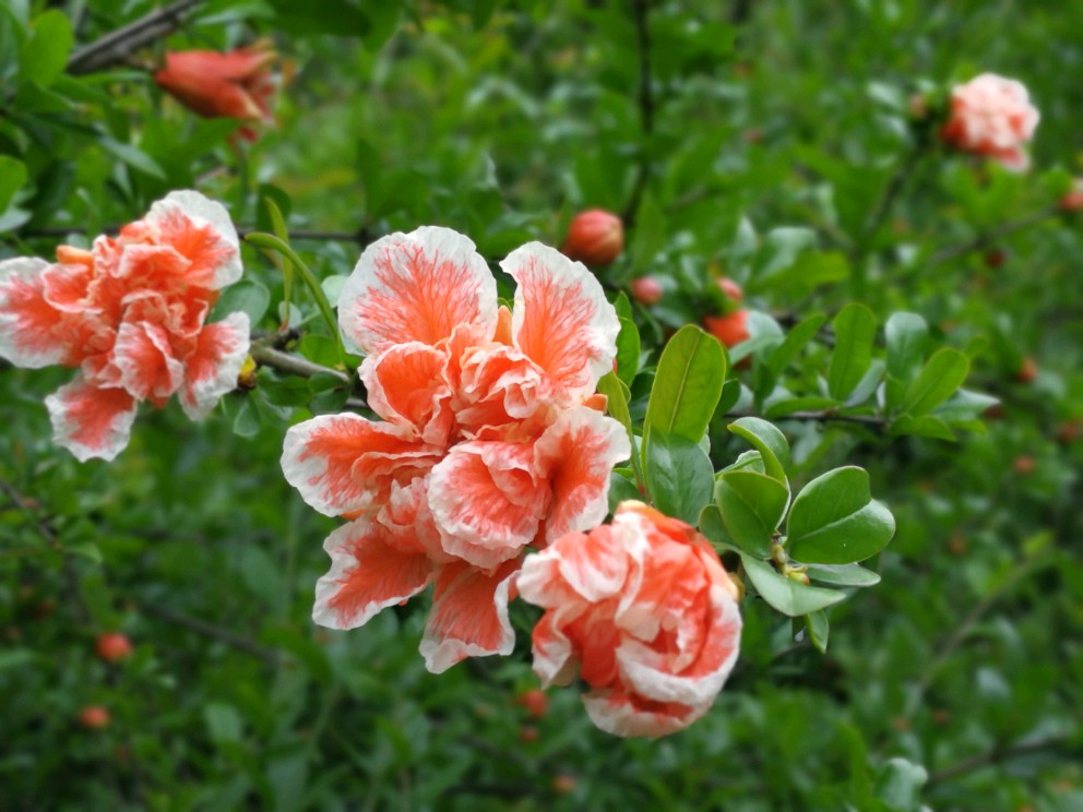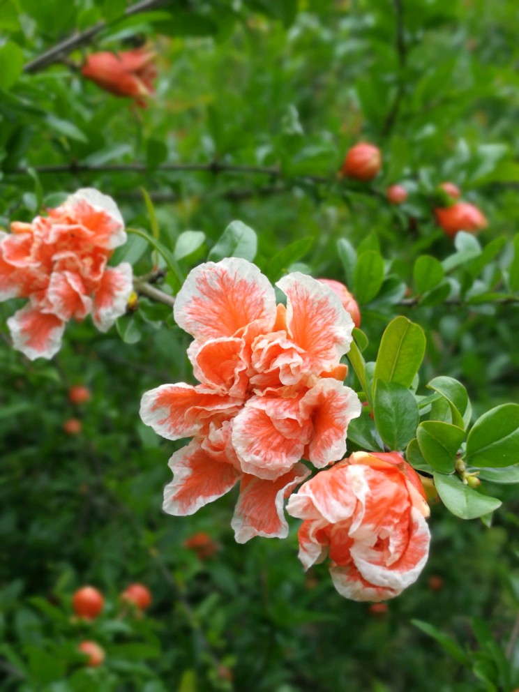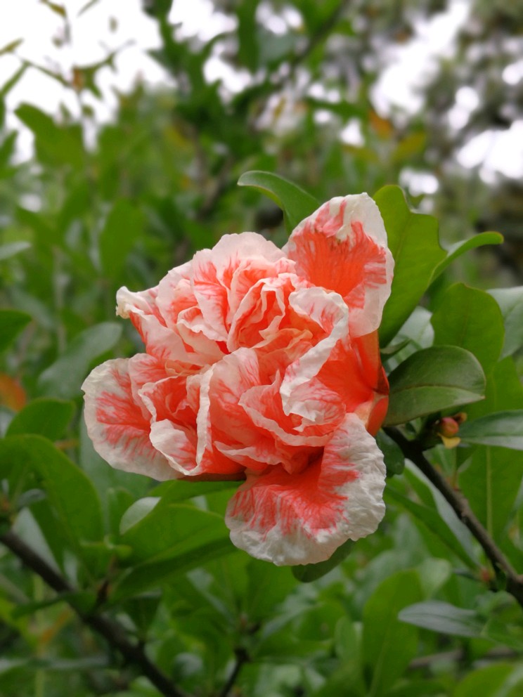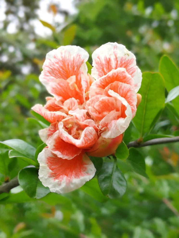 石榴花开红艳艳,但今天看到的石榴花瓣红白杂色,红里透着白,白里透着粉,更耐看!