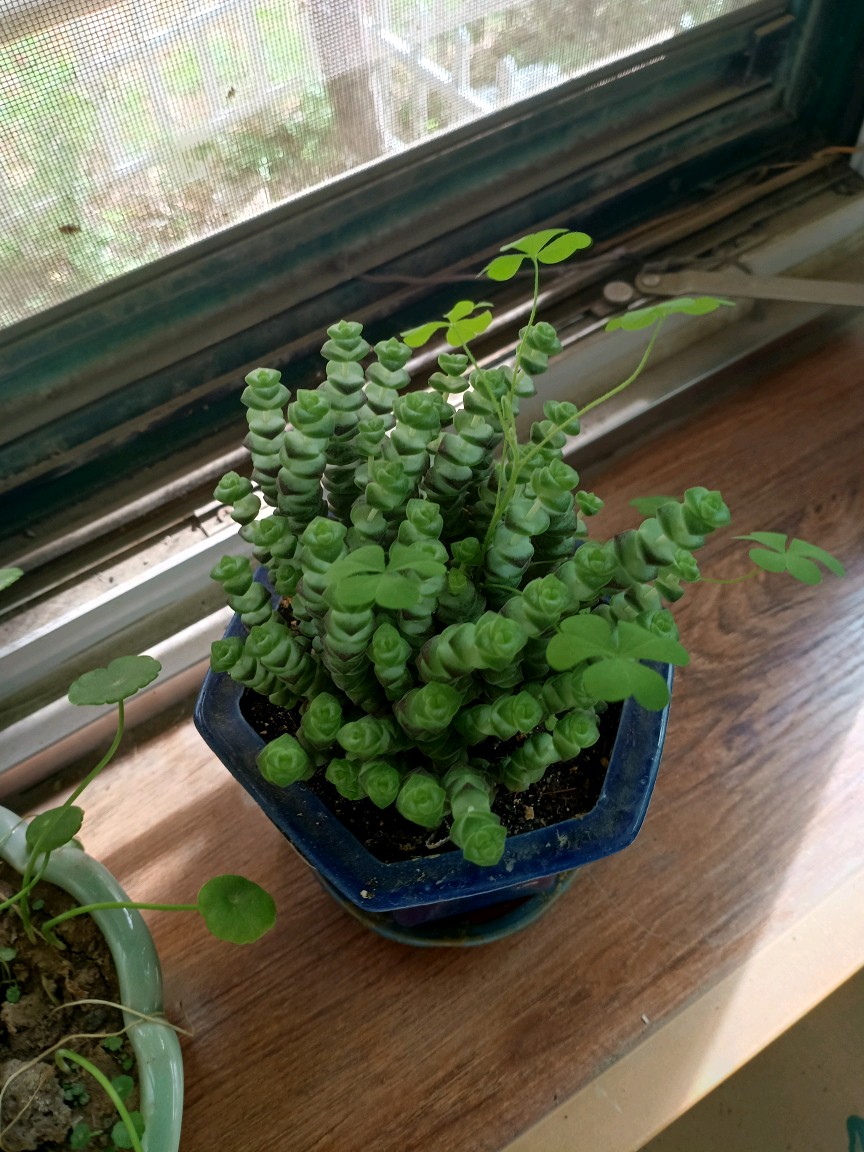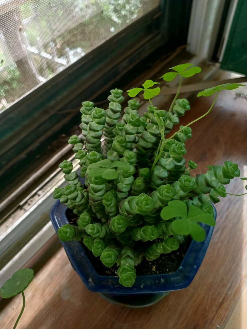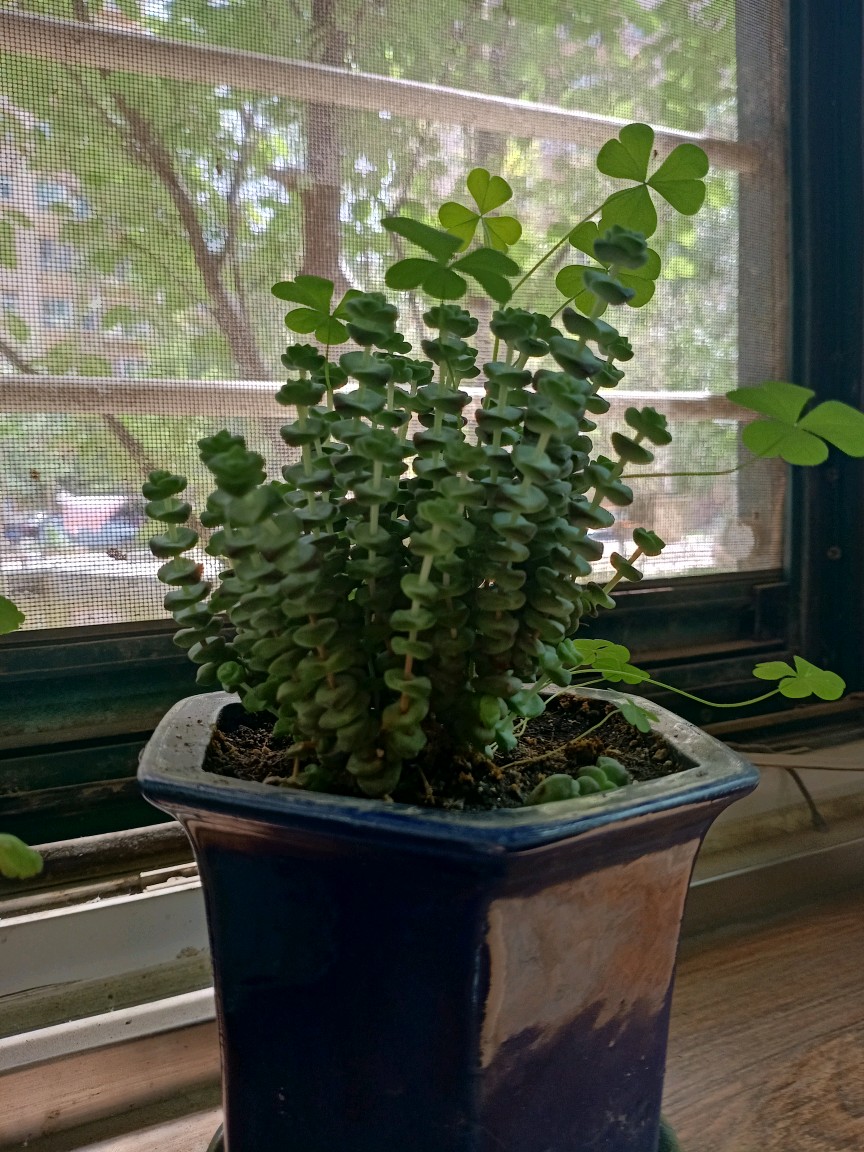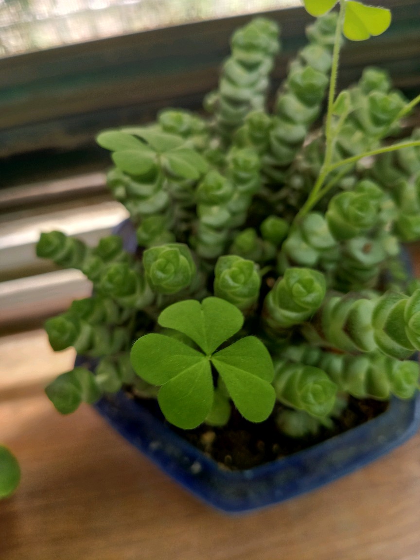 我买这盆的时候,还没有长出三叶草,可过了一段时间,它们就窜了出来,我觉得还挺可爱的!