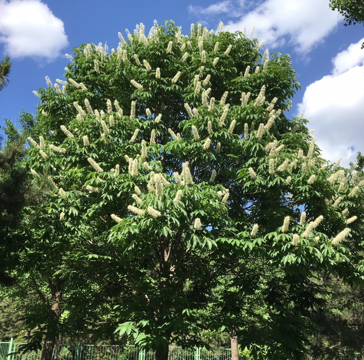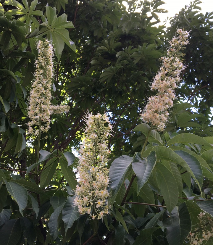 北京植物园卧佛寺前的七叶树开花了,跟我在其它地方看到的花不太一样,这里的是像一把把刷子一样乱伸在空中,以前看到的好像都是像金字塔一样垂直上举,最有意思的是今天看到有三朵花聚在一起,颇像西湖的三潭印月。