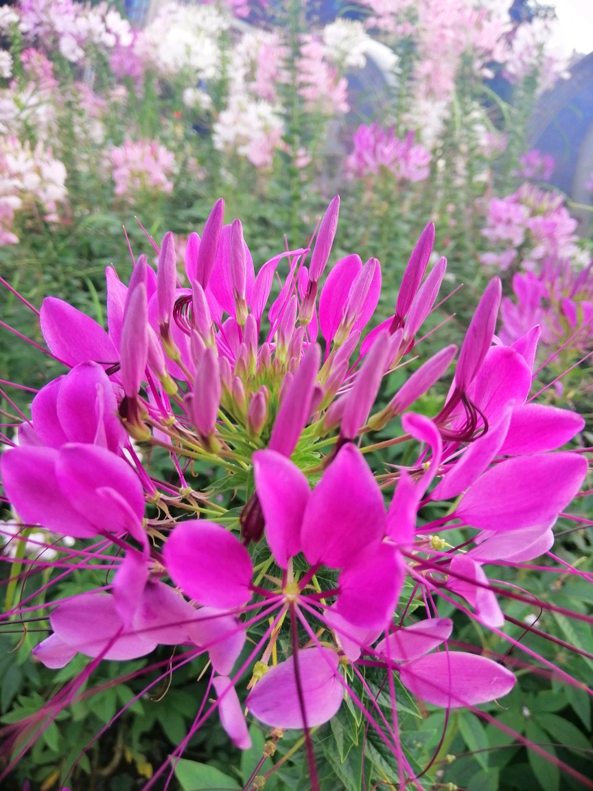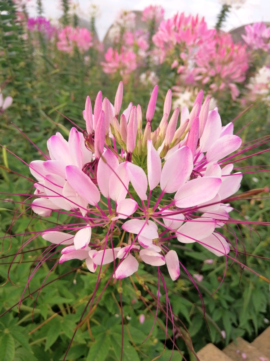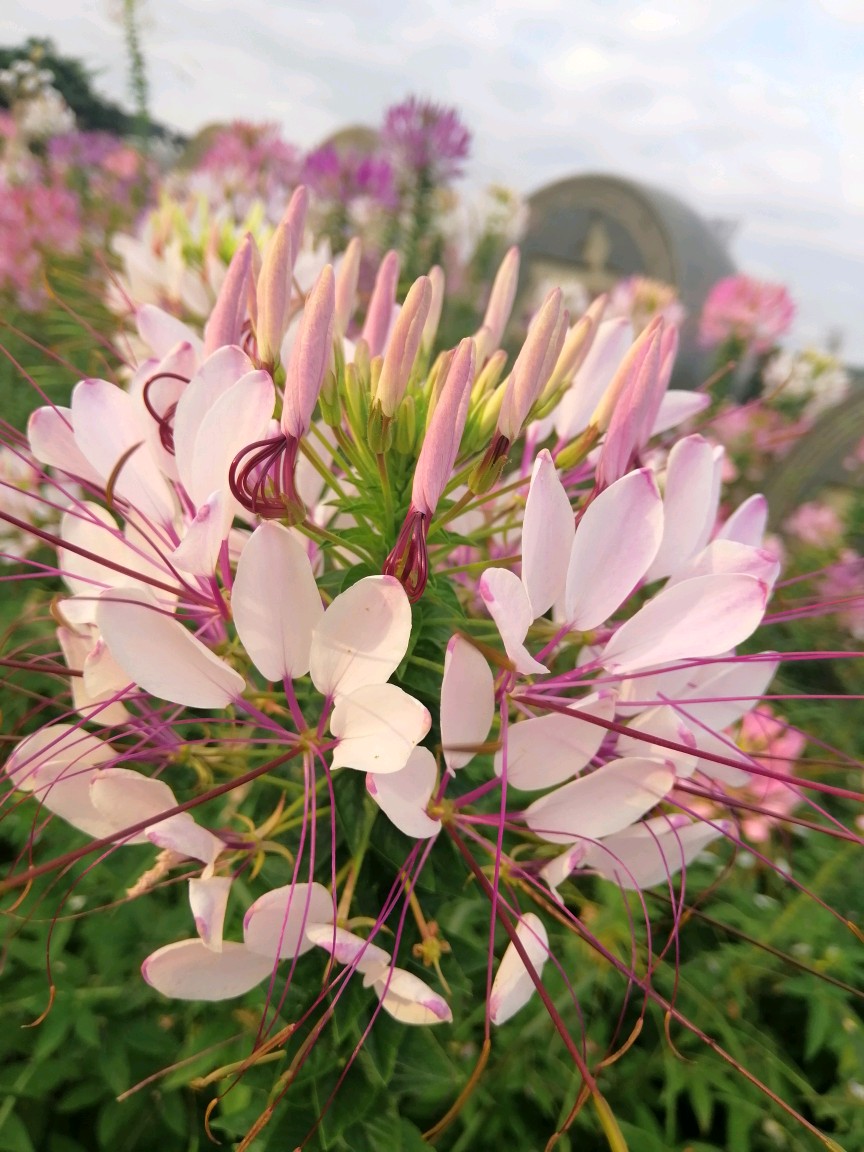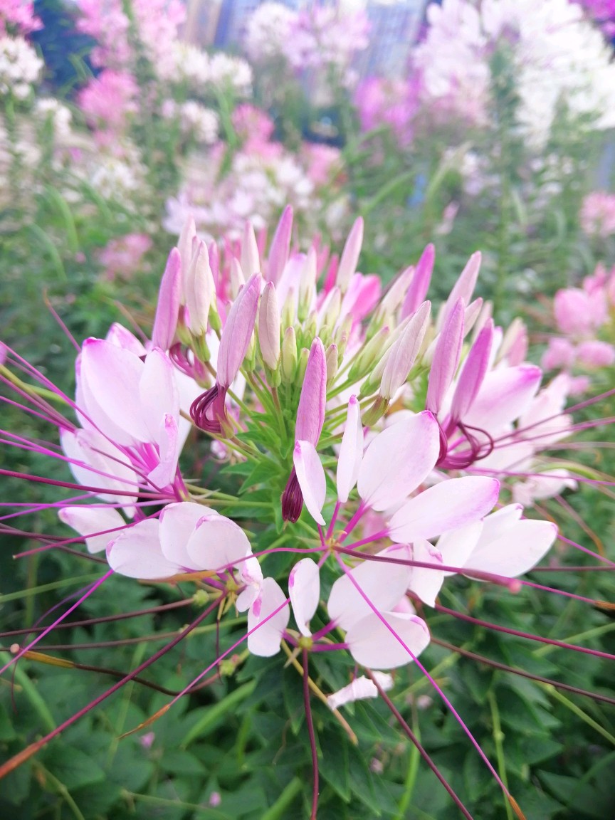 广场上新种养了醉蝶花,已到了盛放的季节,如蝴蝶翩跹……