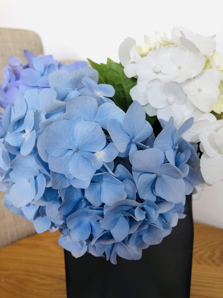 :绣球一年开一次,我今年硫酸铝用少了,没法变小纯蓝色的效果,如果今年秋天无尽夏新枝不开花的话,明年才能开花了,有条件开花才能调色。