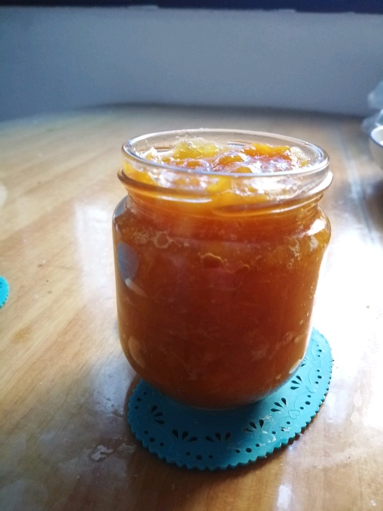 第五步,晾凉后装进干净的玻璃瓶中,放入冰箱冷藏即可,可以抹在面包片中作果酱,也可以冲糖水喝。