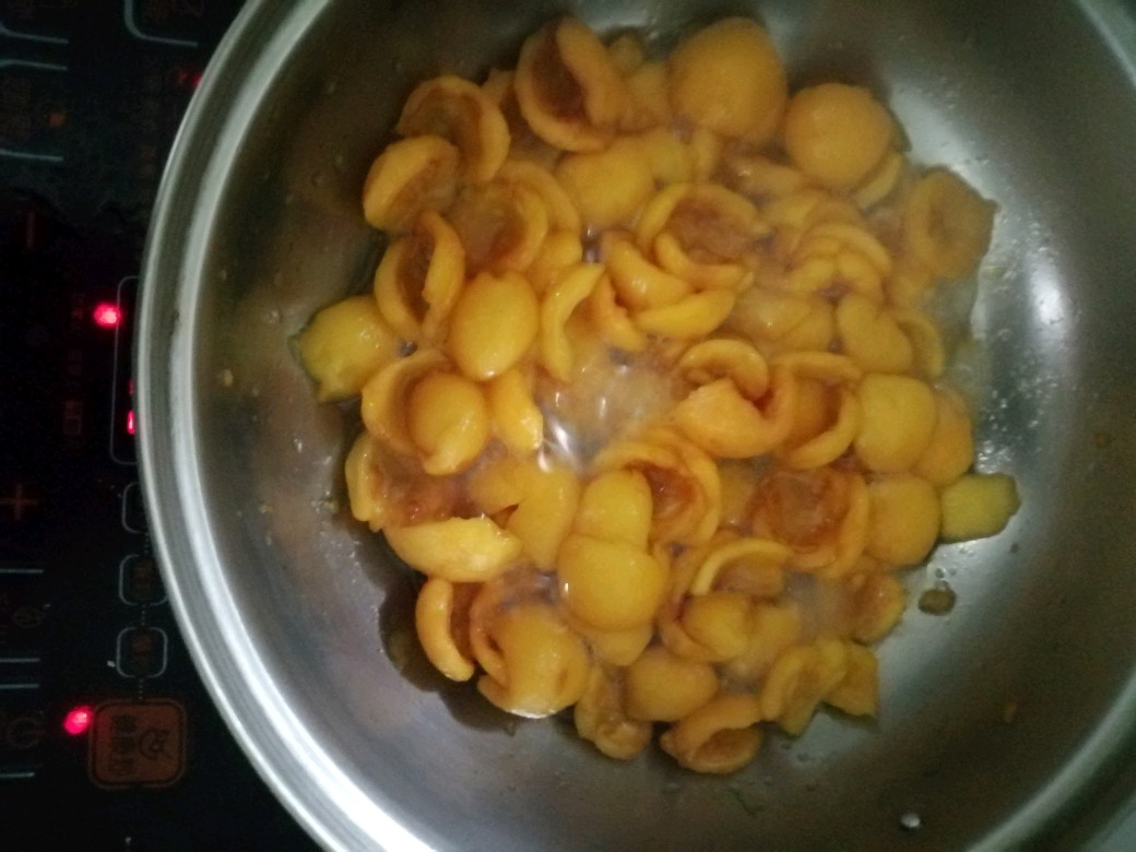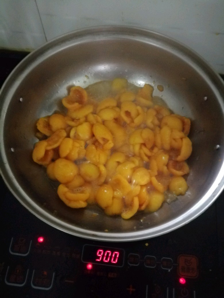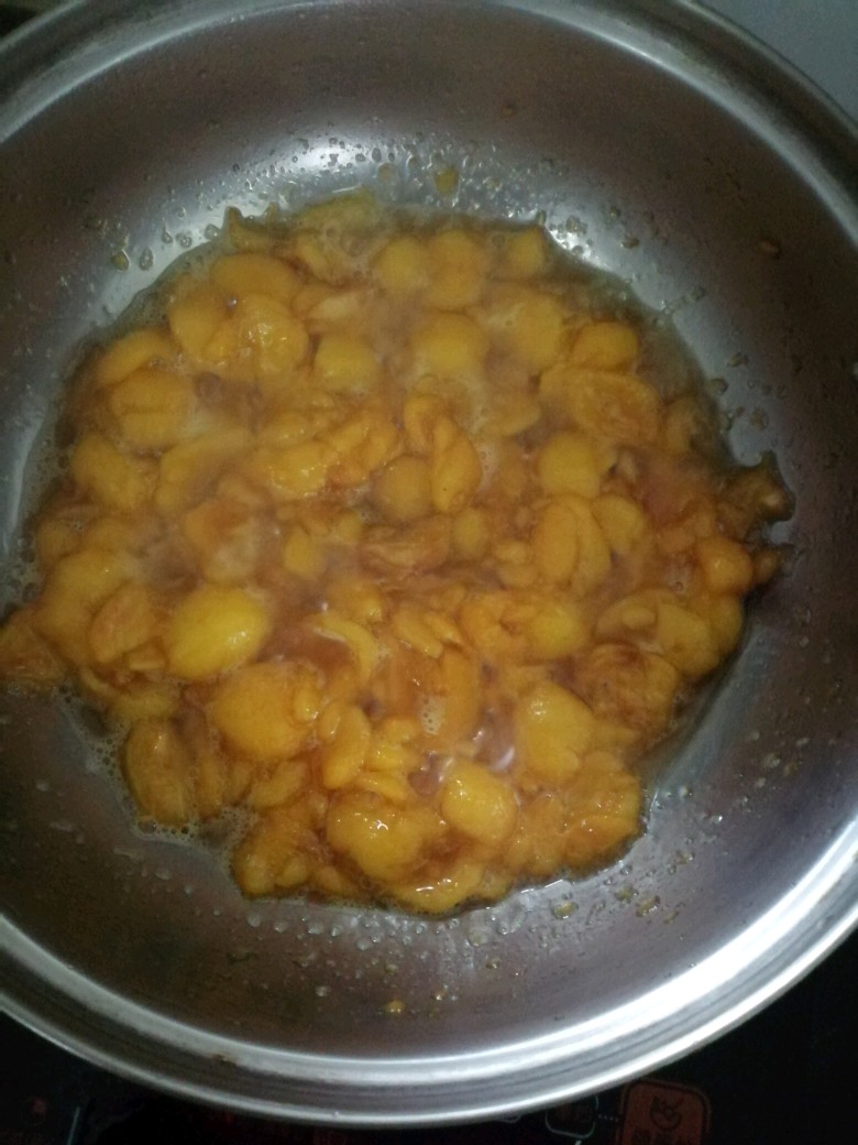 第四步,把枇杷的水分熬干,颜色金莹剔透就可以关火了。
