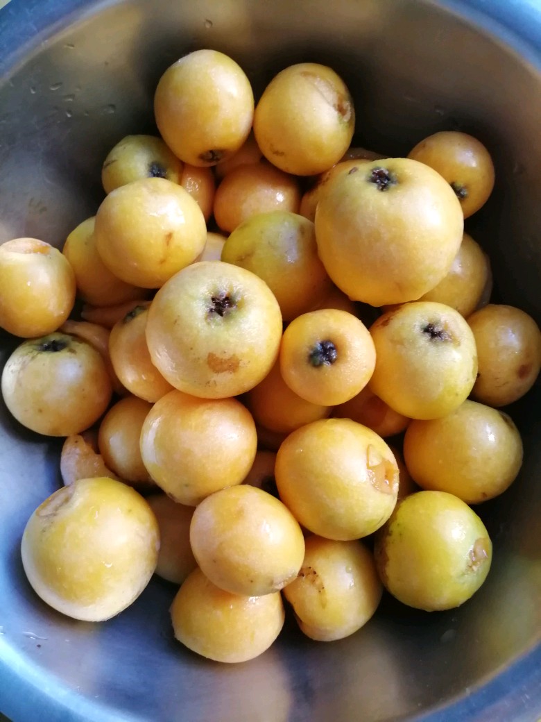 黄灿灿的枇杷熟了,味道甜甜的带些酸。枇杷比较特殊,它秋天长蕾,冬天开花,春天结果,初夏成熟。它可以润肺止咳,促进消化,预防感冒。新鲜的枇杷保存时间不长,我尝试着把它做成了枇杷酱,这样就可以吃很长时间了。