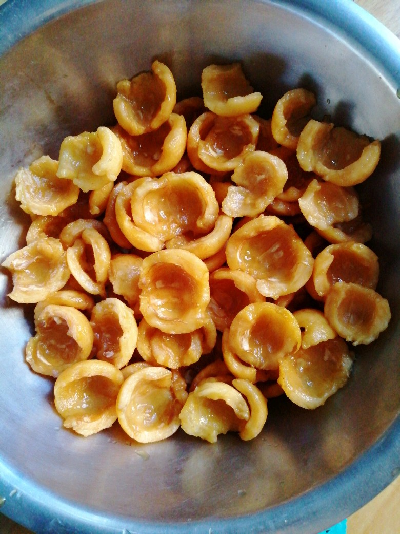 第一步,把枇杷洗净去皮去核,包括里面的白膜。