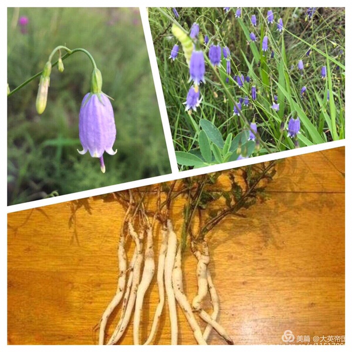 当然,它不叫小铃铛🔔它的名字是沙参。明朝名医李时珍的《本草纲目》把沙参和人参、丹参、玄参、党参并称五参。花似一个个小铃铛,满枝垂挂,根似人参,不过这么美的植物,我可不忍心挖掉它(现附上网上的沙参根图片)。六月份才开始发芽生长。它有养阴清热、润肺化痰、益胃生津的功效。
