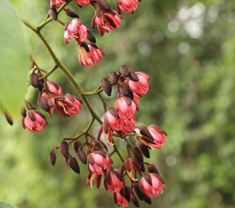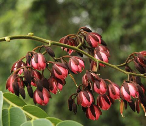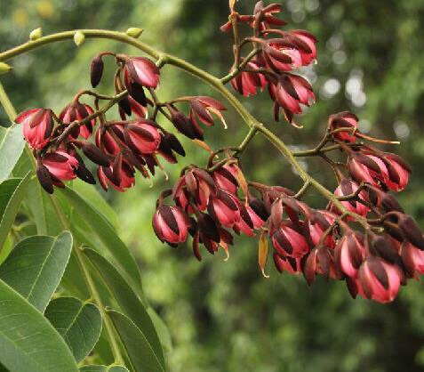 任豆(学名:Zenia insignis Chun)是蔷薇科,仁豆属乔木,高可达20m。小枝黑褐色,散生有黄白色的小皮孔;树皮粗糙,成片状脱落。芽椭圆状纺锤形,有少数鳞片;小叶薄革质,长圆状披针形;圆锥花序顶生,总花梗和花梗被黄色或棕色糙伏毛,花红色,苞片小,狭卵形;荚果长圆形或椭圆状长圆形,红棕色;种子圆形,平滑,有光泽,棕黑色;花期5月,果期6-8月。