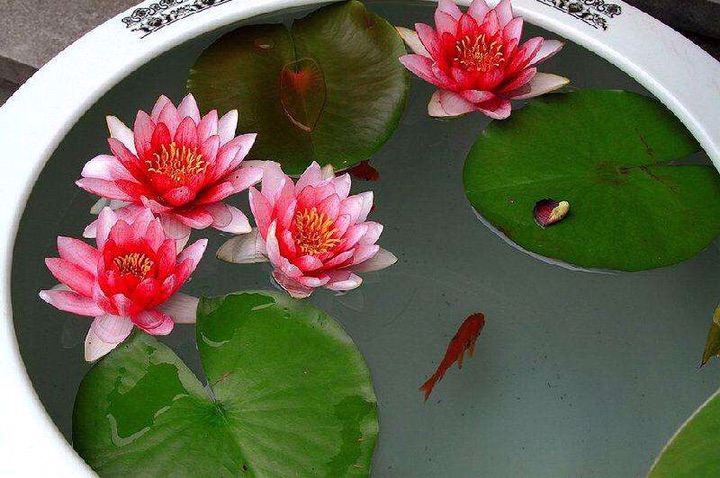 睡莲(学名:Nymphaea L.),多年生水生草本;根状茎肥厚。叶柄圆柱形,细长。叶椭圆形,浮生于水面,全缘,叶基心形,叶表面浓绿,背面暗紫。叶二型:浮水叶圆形或卵形,基部具弯缺,心形或箭形,常无出水叶;沉水叶薄膜质,脆弱。花单生,浮于或挺出水面;花萼四枚,绿色;花瓣通常八片。果实倒卵形,长约3厘米。花大形、美丽,浮在或高出水面,白天开花夜间闭合;萼片近离生;花瓣白色、蓝色、黄色或粉红色,成多轮,有时内轮渐变成雄蕊;药隔有或无附属物;心皮环状,贴生且半沉没在肉质杯状花托,且在下部与其部分地愈合,上部延伸成花柱,柱头成凹入柱头盘,胚珠倒生,垂生在子房内壁。浆果海绵质,不规则开裂,在水面下成熟;种子坚硬,为胶质物包裹,有肉质杯状假种皮,胚小,有少量内胚乳及丰富外胚乳。