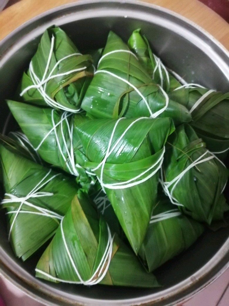 端午节快到了,菜市场都有卖新鲜的粽叶了。虽然一年四季早点铺都有卖粽子的,但我还是喜欢用新鲜的粽叶在这个季节包几个蜜枣粽子。粽叶最常见的是箸叶和芦苇叶,芦苇叶北方比较常见,细长的,用清水洗净,再开水煮几分钟,那特有的清香味就飘了出来。南方喜欢包咸肉粽,碱水粽。北方喜欢包蜜枣或红枣粽,我是喜欢蜜枣粽子,(我包的技术不好,要用棉线缠,技术好的,会用粽叶尾梢作绳子缠好)包好的粽子在锅里温一个晚上,甜甜糯糯的,带着粽叶的清香,味道好极了。