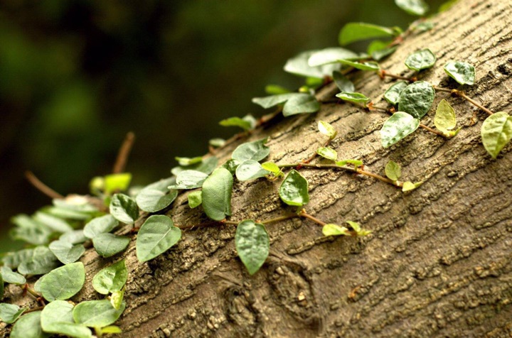 薜荔(学名:Ficus pumila Linn.)又名凉粉子,木莲等。攀援或匍匐灌木,叶两型,不结果枝节上生不定根,叶卵状心形。产福建、江西、浙江、安徽、江苏、台湾等地。瘦果水洗可作凉粉,藤叶药用。