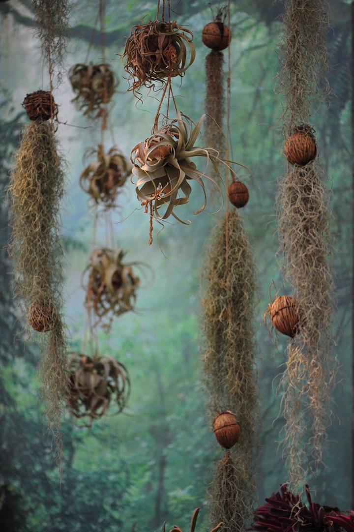 在秋季,对空气凤梨的给水基本上可以分为三个阶段,初秋、仲秋和晚秋,这是由不同时节的空气湿度、温度和光照等条件综合影响造成的。一般而言,温度高、湿度低,空气凤梨需水较多;温度低、湿度高,空气凤梨需水较低。还可观察植株状态,叶尖发黄或发脆,植株萎缩,多是缺水;植株基部呈棕黑色,一碰就植株零散,多是水分过度。关于用水,除了老生常谈的尽量使用纯净水、雨水等之外,有一点要强调,就是要将水置于常温下半天,使温度接近空气凤梨所处的微环境,避免温度忽高忽低引起植株不适造成的病变。当然,使用自来水更要放置半天以上再使用,除了令其温度接近常温