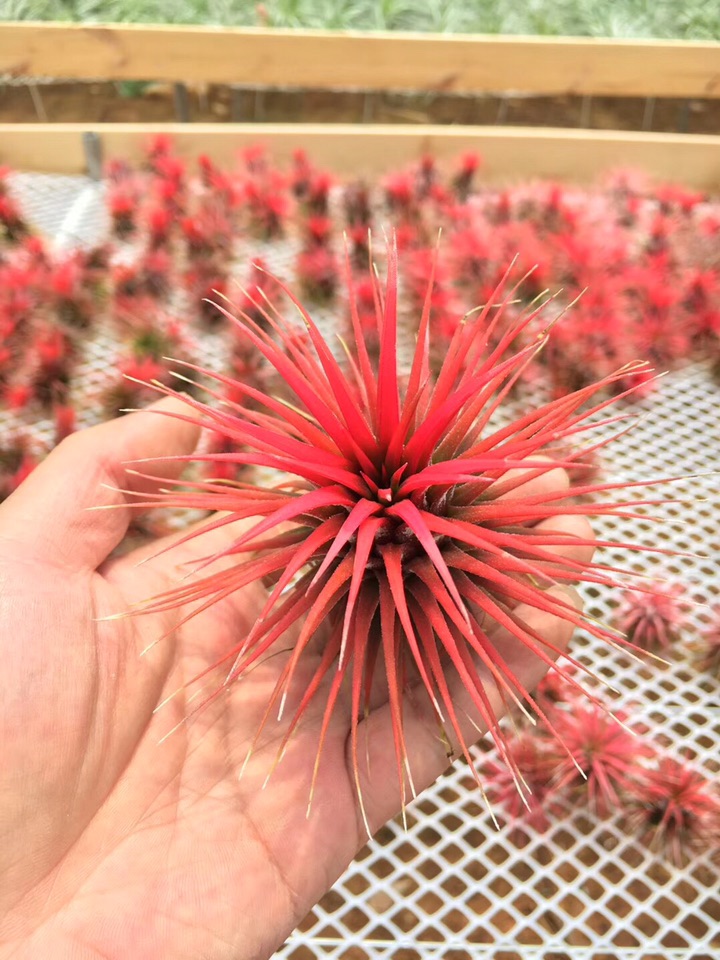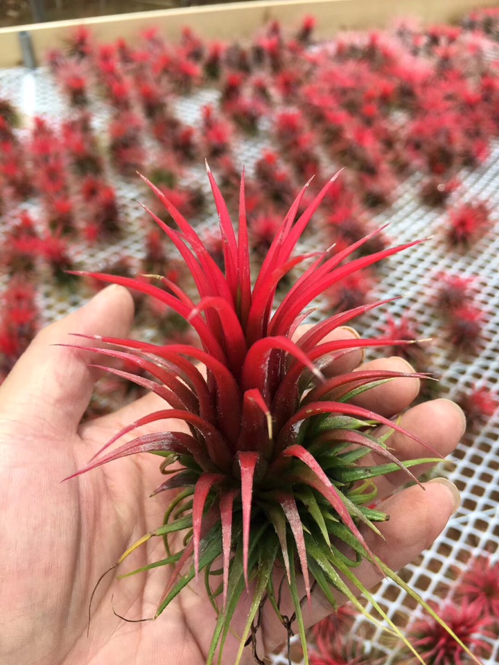 在秋季,对空气凤梨的给水基本上可以分为三个阶段,初秋、仲秋和晚秋,这是由不同时节的空气湿度、温度和光照等条件综合影响造成的。一般而言,温度高、湿度低,空气凤梨需水较多;温度低、湿度高,空气凤梨需水较低。还可观察植株状态,叶尖发黄或发脆,植株萎缩,多是缺水;植株基部呈棕黑色,一碰就植株零散,多是水分过度。关于用水,除了老生常谈的尽量使用纯净水、雨水等之外,有一点要强调,就是要将水置于常温下半天,使温度接近空气凤梨所处的微环境,避免温度忽高忽低引起植株不适造成的病变。当然,使用自来水更要放置半天以上再使用,除了令其温度接近常温