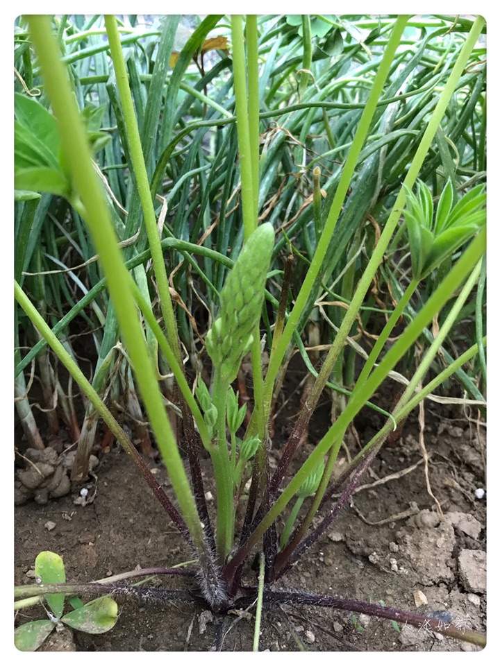 今年的羽扇豆是去年的种子,晚了一年才苏醒,它的出现让我高兴了好一阵子。6.23日,夫告诉我羽扇豆长花葶了,我开始持续关注着它的变化,6.30第一朵花终于开了,此后一周每天都有新花陆续开放,我喜欢的紫色越来越浓,那日闲暇数了数已经开了70朵,这棵多叶羽扇豆将开出百朵花。