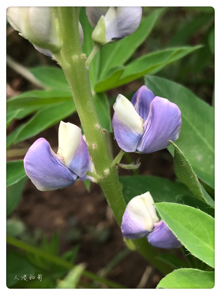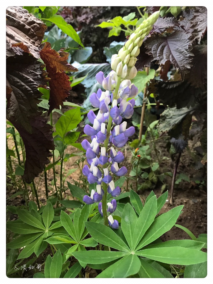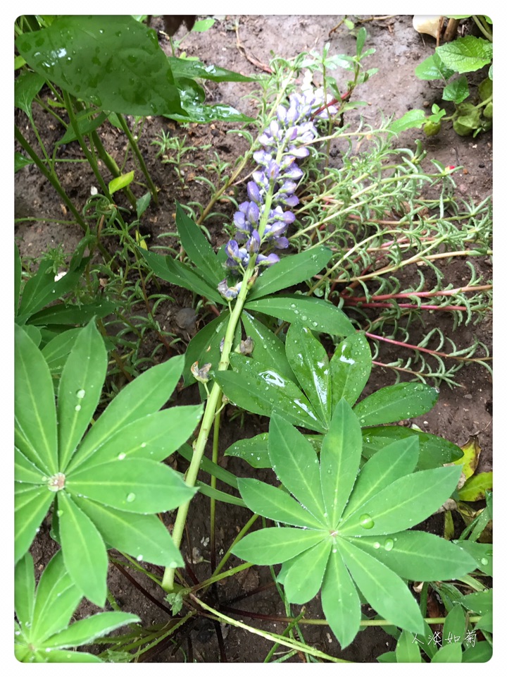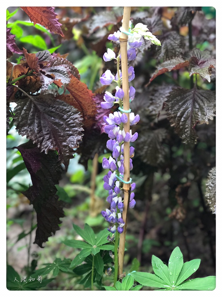 今天,雨,在编辑羽扇豆的照片,忽然想拍张羽扇豆雨后的倩影,出了房门就发现不见了我的那一串紫,走进一看因无法承受雨水的重负花葶倒伏在地上,赶紧找来竹竿和毛线将羽扇豆的花葶固定在竹竿上,希望它可以继续开花、结实,愿明年的小院中还能见到羽扇豆的身影。