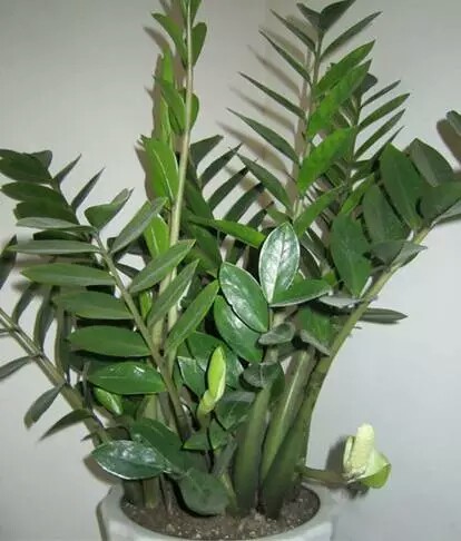 雪铁芋,小叶形状形似铜钱,所以又被称为金钱树,它的叶片翠绿油亮,放在客厅、卧室、办公室,既能调节湿度,又有聚财发福的含义。