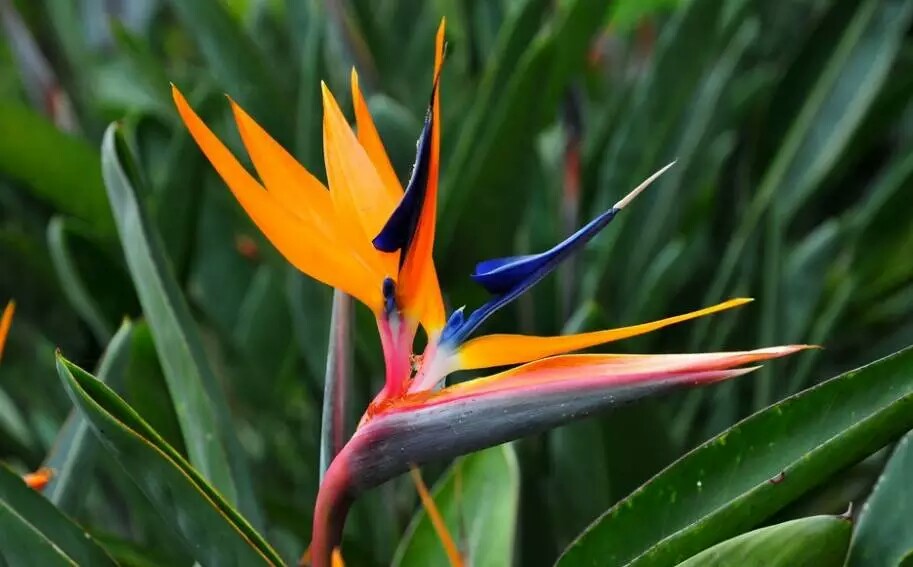 鹤望兰四季常青,叶片宽大,花形奇特,像展翅的鸟儿一样,具有非常高的观赏价值。