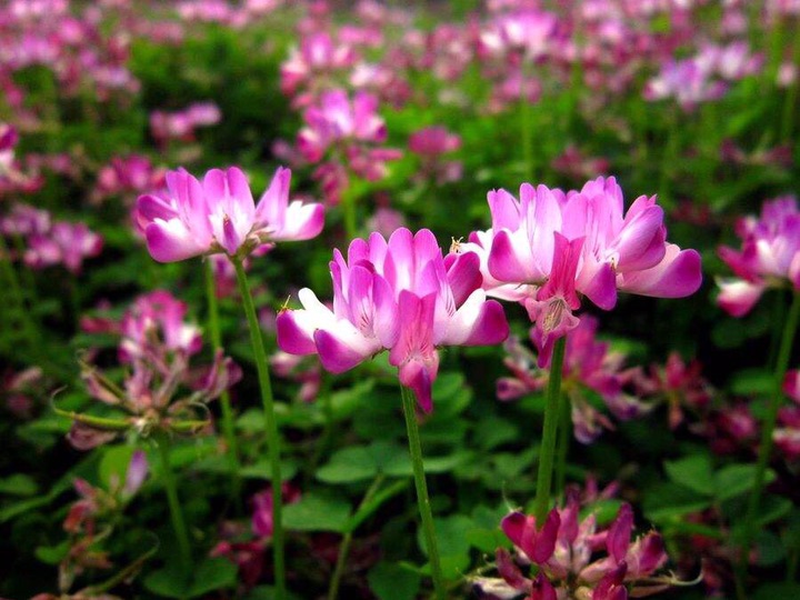 紫云英(学名:Astragalus sinicus L.)是豆科,黄耆属二年生草本植物,匍匐多分枝,高可达30厘米,奇数羽状复叶,叶柄较叶轴短。托叶离生,小叶倒卵形或椭圆形,先端钝圆或微凹,基部宽楔形,上面近无毛,下面散生白色柔毛,总状花序,有花呈伞形;总花梗腋生,苞片三角状卵形,花梗短;花萼钟状,萼齿披针形,花冠紫红色或橙黄色,旗瓣倒卵形,瓣片长圆形,荚果线状长圆形,种子肾形,栗褐色,2-6月开花,3-7月结果。