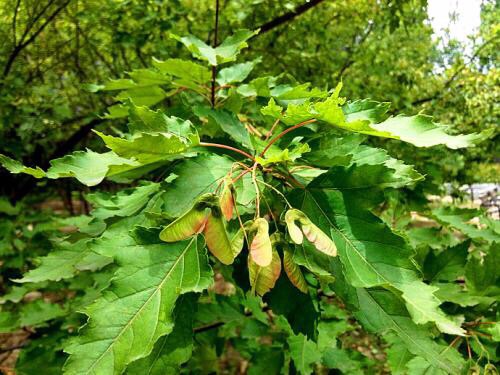 茶条槭(学名:Acer ginnala Maxim. )是槭树科槭属落植物,叶灌木或小乔木,高可达6米。树皮粗糙、灰色,小枝细瘦,无毛,冬芽细小,淡褐色,鳞片近边缘具长柔毛,叶片长圆卵形或长圆椭圆形,中央裂片锐尖或狭长锐尖,上面深绿色,无毛,下面淡绿色,近于无毛,叶柄细瘦,绿色或紫绿色,伞房花序无毛,具多数的花;花梗细瘦,花杂性,雄花与两性花同株;萼片卵形,黄绿色,花瓣长圆卵形白色,较长于萼片;花丝无毛,花药黄色;花盘无毛,果实黄绿色或黄褐色;5月开花,10月结果。