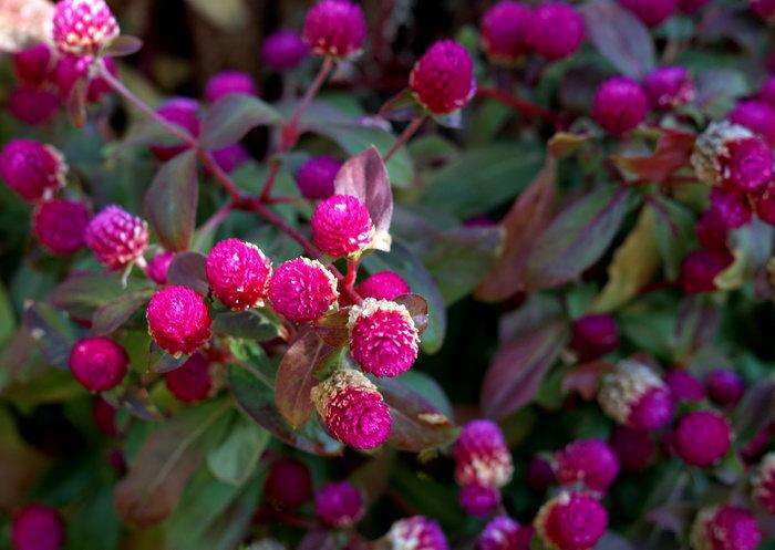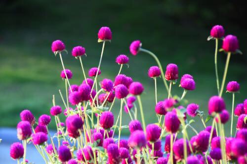 千日红(学名为Gomphrena globosa L.),别名:百日红、火球花, 苋科、千日红属一年生直立草本植物,高20-60厘米;花果期6-9月。花色艳丽有光泽,花干后而不凋,经久不变,所以得名千日红。千日红喜阳光、耐干热、生性强健,原产美洲热带,为热带和亚热带常见花卉。供观赏,头状花序经久不变,除用作花坛及盆景外,还可作花圈、花篮等装饰品。