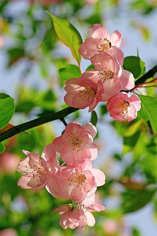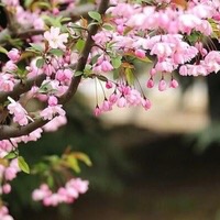 垂丝海棠(学名:Malus halliana Koehne)是落叶小乔木,高达5米,树冠开展;叶片卵形或椭圆形至长椭卵形,伞房花序,具花4-6朵,花梗细弱下垂,有稀疏柔毛,紫色;萼筒外面无毛;萼片三角卵形,花瓣倒卵形,基部有短爪,粉红色,常在5数以上;果实梨形或倒卵形,略带紫色,成熟很迟,萼片脱落。花期3-4月,果期9-10月。生山坡丛林中或山溪边,海拔50-1200米。分布于中国江苏、浙江、安徽、陕西、四川和云南。可入药,主治血崩。