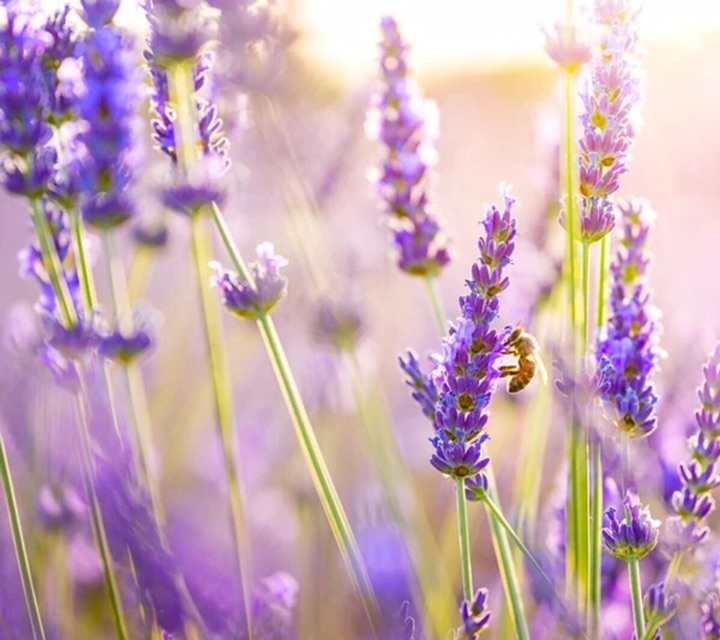 薰衣草(拉丁学名:Lavandula angustifolia Mill.)又名香水植物,灵香草,香草,黄香草,拉文德。属双子叶植物纲、唇形科、薰衣草属的一种小灌木。茎直立,被星状绒毛,老枝灰褐色,具条状剥落的皮层。叶条形或披针状条形,被或疏或密的灰色星状绒毛,干时灰白色或橄榄绿色,全缘而外卷。轮伞花序在枝顶聚集成间断或近连续的穗状花序;苞片菱状卵形,小苞片不明显;花萼卵状筒形或近筒状;花冠长约为曹的二倍,筒直伸,在喉部内被腺状毛。小坚果椭圆形,光滑。