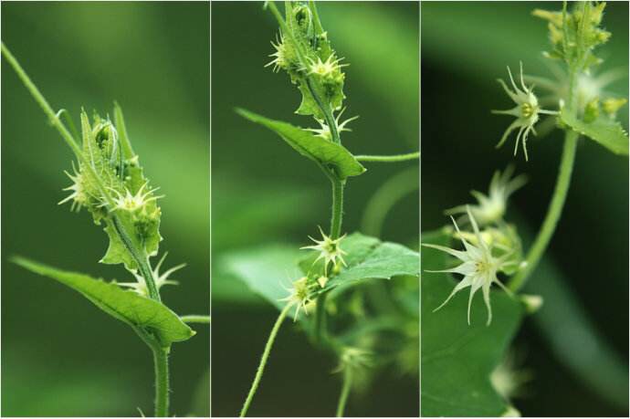 盒子草(学名:Actinostemma tenerum var.tenerum)为葫芦科盒子草属下的一个变种。也称合子草,其中文命名,朴素而精准,堪称典范。盒子草属于葫芦科、盒子草属,适合生于山坡阴湿处草丛中、沟边灌丛中盒子草有小毒,味苦、性寒,可利尿消肿、清热解毒,另可治毒蛇咬伤。用于肾炎水肿,湿疹,疮疡肿毒。
