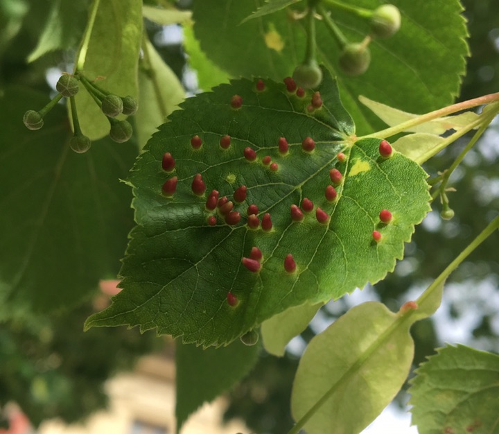 不知道为什么椴树叶子上长了好多红点?