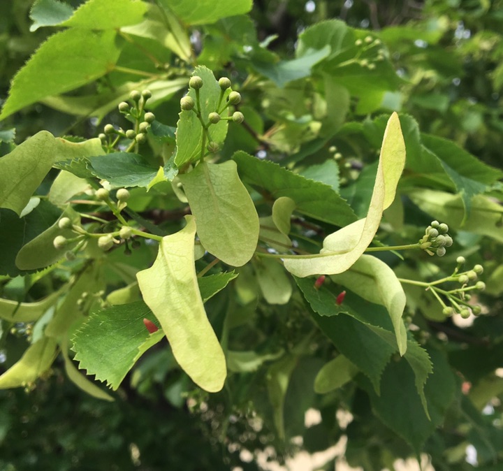 又看到椴树那很有特色的翅果,以前在北京植物园就看到过。