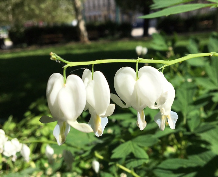 今天有幸看到了白色的荷包牡丹,惊奇且兴奋。