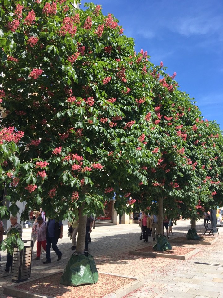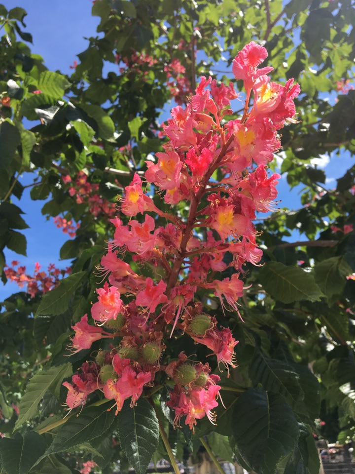 遇到红色七叶树,开得很旺,花也低,只是花的形状跟平素见到的不太一样,用形色查,居然也不识,说跟紫薇相似。